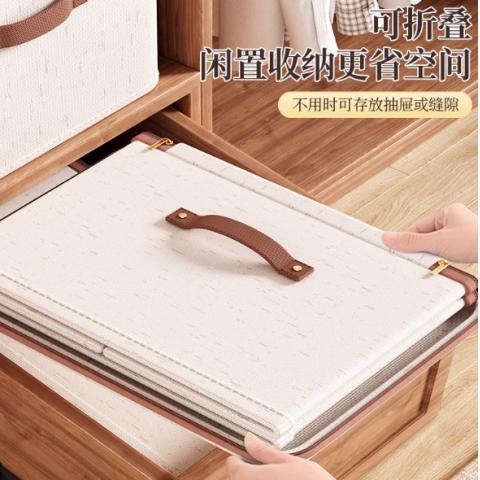 攒单收纳盒棉麻拉链收纳箱带盖衣物家用卧室大容量杂物...
