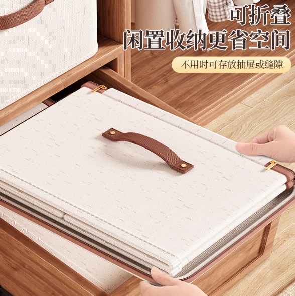攒单收纳盒棉麻拉链收纳箱带盖衣物家用卧室大容量杂物整理箱