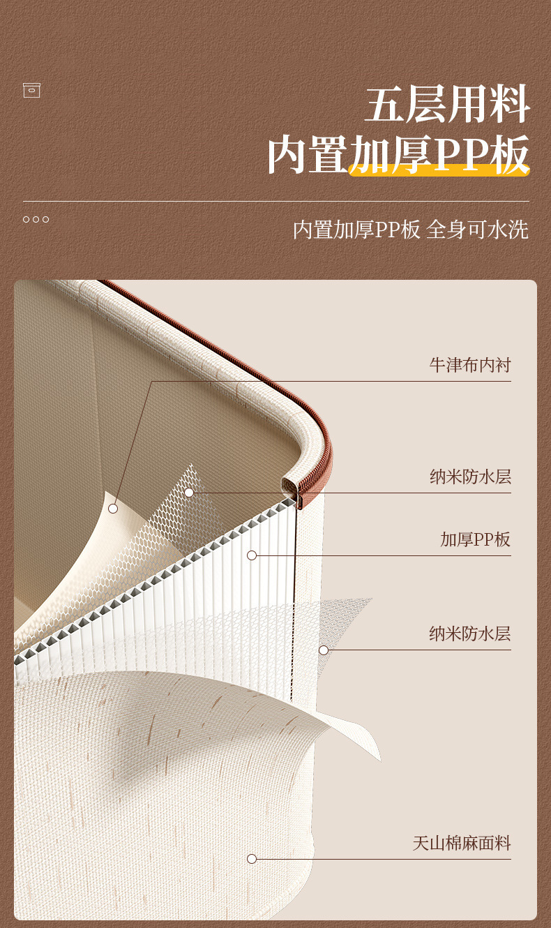 攒单收纳盒棉麻拉链收纳箱带盖衣物家用卧室大容量杂物整理箱